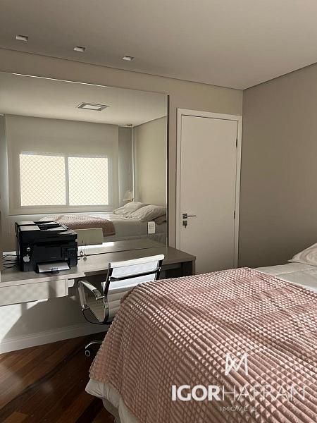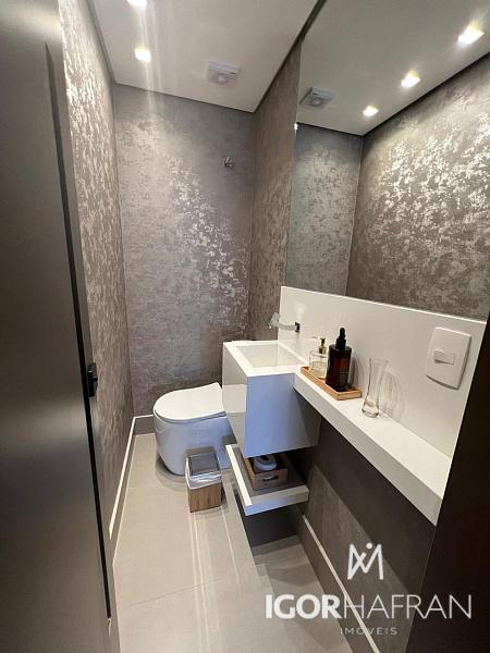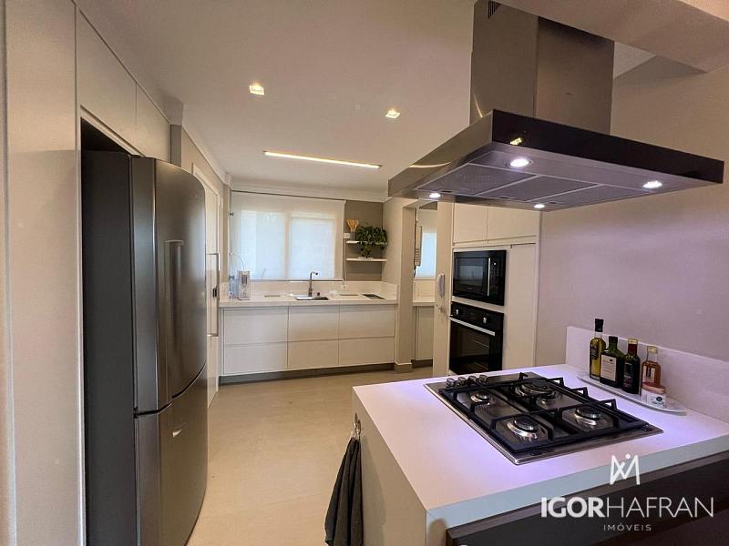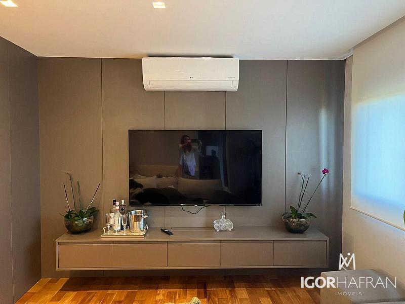 Ao entrar neste imóvel, é imediatamente impactado pelo conforto. A sala de estar, com piso em madeira de tom elegante, se integra com a sala de TV, criando um ambiente perfeito para relaxamento. O home theater, com painel e aparador em marcenaria planejada, oferece um espaço ideal para entretenimento. A sala de jantar, com mesa e seis cadeiras, se conecta a cozinha equipada, criando uma área funcional e acolhedora. A lavanderia ampla, com bancada e gabinetes, e a despensa com armários planejados, garantem praticidade e organização. O lavabo decorado adiciona um toque de requinte ao ambiente. A varanda, integrada ao bar/adega e ao home office, oferece um espaço versátil e confortável. O imóvel, totalmente reformado, é repleto de armários planejados e iluminação em LED, com lustres sofisticados e persianas rolô em todos os ambientes, proporcionando aconchego e privacidade. O ar condicionado completa o conforto, oferecendo a temperatura ideal. Cada detalhe foi cuidadosamente pensado para criar um lar funcional e elegante.