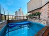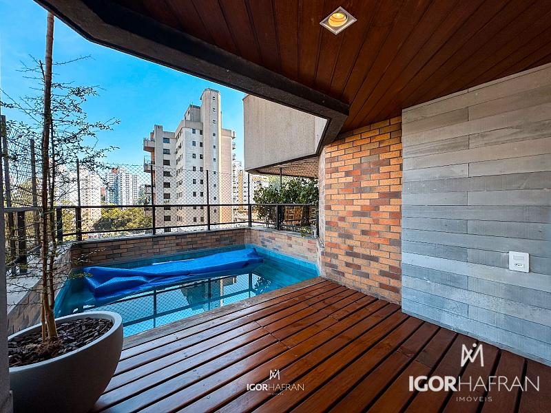 A piscina privativa emoldura momentos de lazer e relaxamento com exclusividade total  – um privilégio raro em apartamentos urbanos.