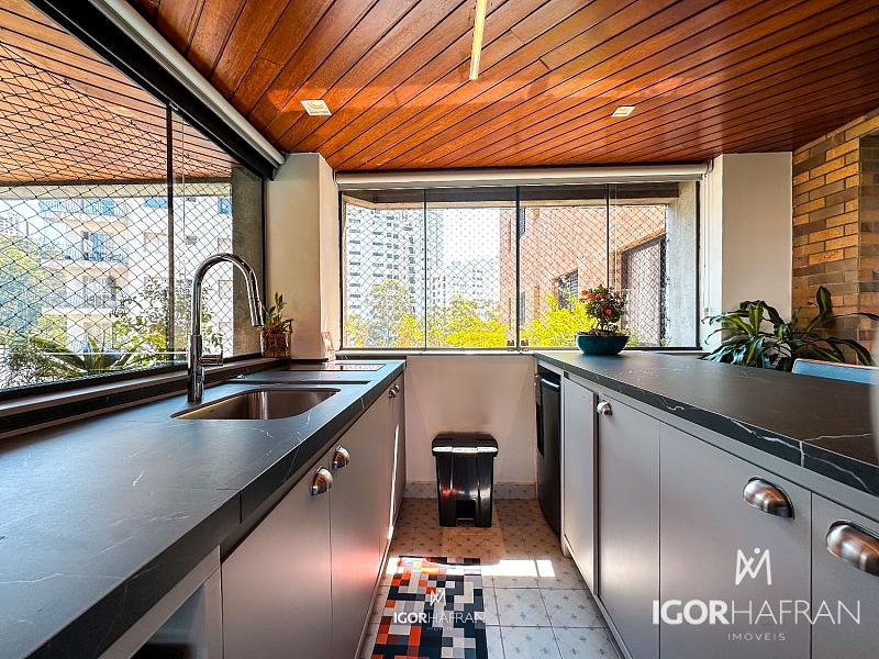 A cozinha equipada com eletros Cuisinart é um convite à arte de receber, complementada por uma área gourmet completa e a cereja do bolo: uma adega imersiva climatizada para até 600 garrafas, perfeita para os apaixonados por vinhos e encontros memoráveis.